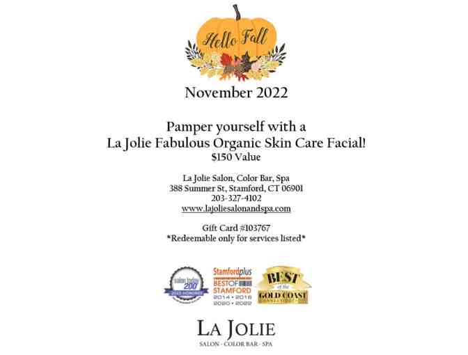 Pamper yourself with a La Jolie Fabulous Organic Skin Care Facial!
