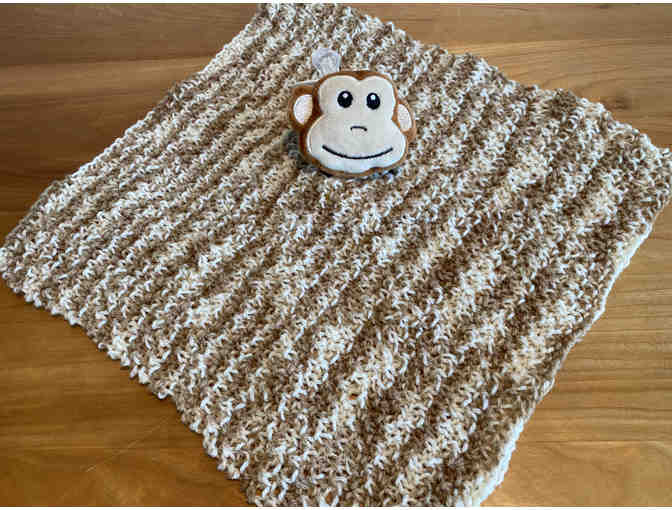 Nothing eases separation anxiety in a baby better than having an adorable Lovey to take with him everywhere. This very soft Lovey with a mischievous monkey on top and a pacifier will comfort him until you return. The pacifier can be easily detached for washing.