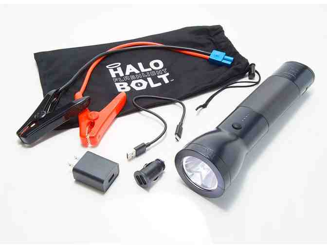 Halo Portable Car Jump Starter/Flashlight with Dual USB Ports for charging all of your devices.