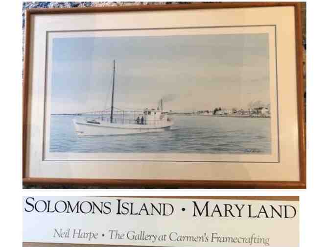 Wm. B. Tennison is a nine-log sailing bugeye hull converted to powered buy-boat, official number 081674. She is home ported at Back Creek, Solomons Harbor, Solomons, Calvert County, Maryland. Her wide beam and shoal draft, typical of the bugeye type, is ideally suited for oyster dredging on the shallow waters of the Chesapeake Bay. This print is 18 x 27.5. About the Artist: Neil Harpe Neil was born in Annapolis, Maryland, where he grew up along the creeks and backwater marshes of the Chesapeake Bay, the region where his family has lived for generations. Swimming, crabbing, fishing and watching watermen at their daily activities were a part of his childhood and fostered an early love of nature and the sea.