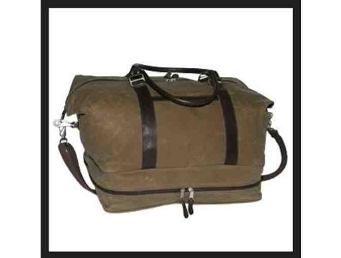 Made from brushed waxed canvas. The vintage, weathered look is part of the bag's charm. Convenient base compartment for shoes, toiletries or other items.