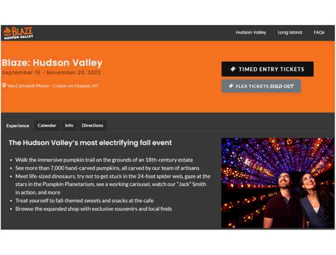4 VIP Tickets to The Hudson Valley Great Jack OLantern Blaze