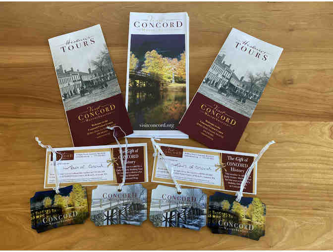 You must contact the Concord Visitor Center to reserve your place in the tour you choose, then pay with the gift vouchers included in this Auction item. All tours may be reserved as private tours for 4 people if you wish.