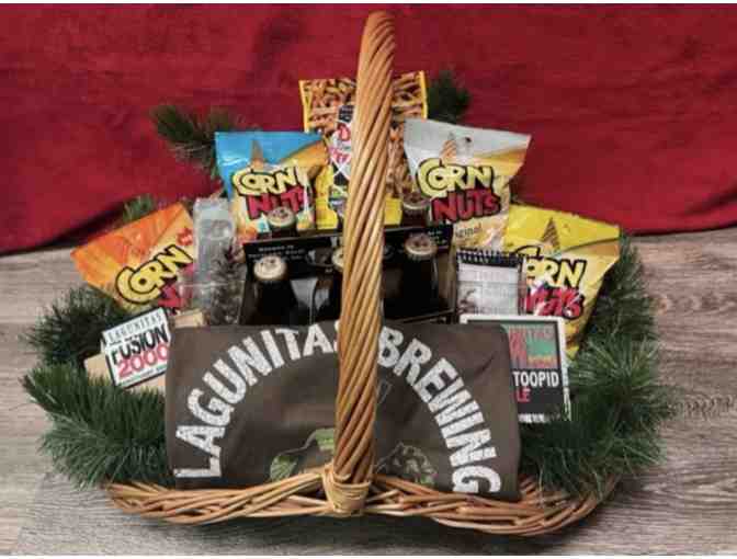 Lagunita's Brewery Basket includes Laguitas swag, beer and snacks.