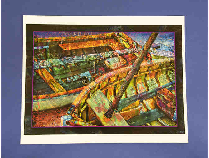 Rick Freed is a graduate of Carnegie Mellon University and got his masters in printmaking from Pratt Institute. He teaches art courses to all ages, though mostly at the college level. He also has a small mural company, Muralworkz (www.muralworkz.com), and has a process that allows kids of all ages to design their own murals, but with a professional final touch. He has worked in schools, museums, as well as public and private spaces. A good portion of his life has been spent at the family home on Martha’s Vineyard and as such a great portion of his representational imagery is rooted in life there, as seen in "Beached 6".