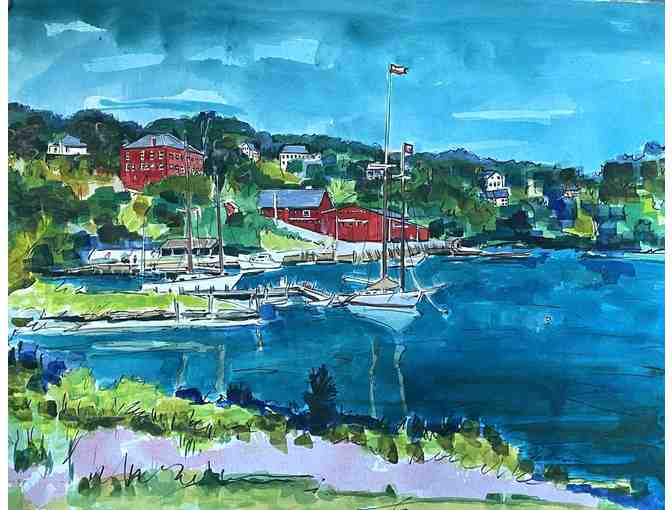 Elegant 36" x 36" Original watercolor painting of the Rockport Harbor Waterfront