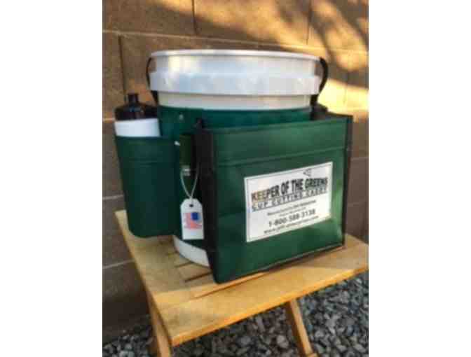 Cup Cutting Caddy is for use in the golf course setup program. This tool bag/bucket carries all of the tools needed to perform this daily job on the golf course.