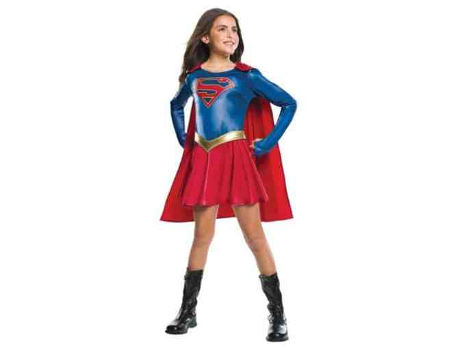 Officially licensed from the TV series, this girls Supergirl costume helps give your girl the look she needs to get started in her new career as a Kryptonian hero. Unfortunately, it doesn't grant your child any super powers, but it does have a shiny blue top with an āSā shield that's enough to make any girl feel strong enough to fight against Red Tornado! The red skirt has a smooth satin style and the matching red cape is a must-have for any girl trying to battle against the forces of evil. All of it combines for a look that can turn any girl into the greatest heroine that the world has ever known!