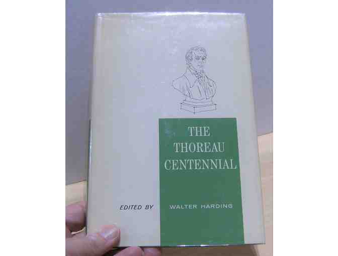 The Thoreau Centennial. Papers marking the observance in New York City of the one hundredth anniversary of the death of Henry David Thoreau. Edited by Walter Harding. State University of New York Press, 1964. Contents: The Conception of Character in A Week on the Concord and Merrimack Rivers / Carl F. Hovde ; Walden: The Strategy of Paradox / Joseph J. Moldenhauer ; The Last Days of Henry Thoreau / Walter Harding ; The Day Thoreau Didn't Die / Raymond Adams ; Thoreau: Years of Decay and Disappointment? / J. Lyndon Shanley ; A Parallel of Parablists: Thoreau and Frost / Reginald L. Cook ; Thoreau and Human Nature / Howard Mumford Jones ; Living Is So Dear / Rev. Donald S. Harrington ; Thoreau's Claim to Greatness / Raymond Adams ; Henry David Thoreau: A Tribute / Braj Kumar Nehru. Green stamped cloth with green and white dust jacket in plastic cover. Ex-library, with only a few marks. In good condition and only lightly aged.