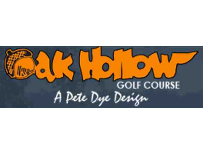 An 18-hole round of golf for four with carts at Oak Hollow Golf Course in High Point, NC. Foursome cannot be split into two groups of two. Golf appropriate attire is required. Valid Monday through Saturday. Certificate expires May 8, 2024. Visit http://www.oakhollowgc.com/.