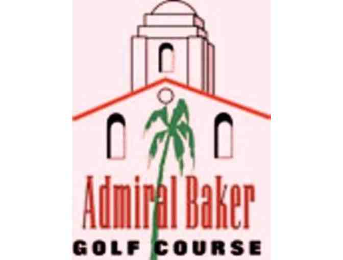 An 18-hole round of golf for four at Admiral Baker Golf Course in San Diego, CA. Foursome not allowed to be split in two. Golf appropriate attire required. Tee times available Monday-Sunday. Seven days advanced booking required. Certificate expires April 25, 2024. Visit: https://sandiego.navylifesw.com/