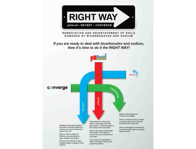 The Right Way Program is the most comprehensive approach to treating and preventing sodium and bi-carbonate toxicity, in addition to: mining available phosphorus, treating abiotic and biotic stressors, improving water movement, and frees up bound calcium.