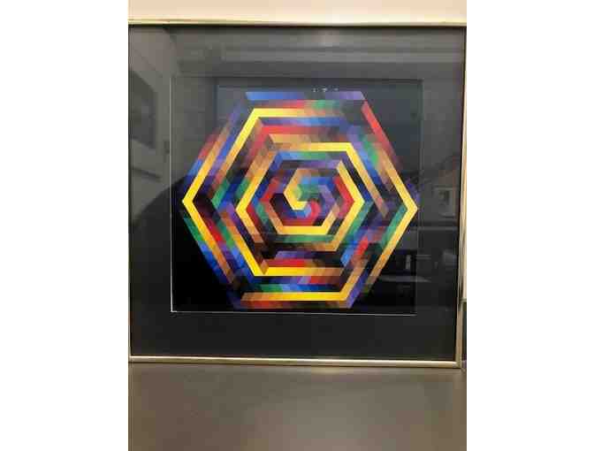 Framed print by Victor Vasarely, Hungarian French artist whose work is generally seen as aligned with Op-art.