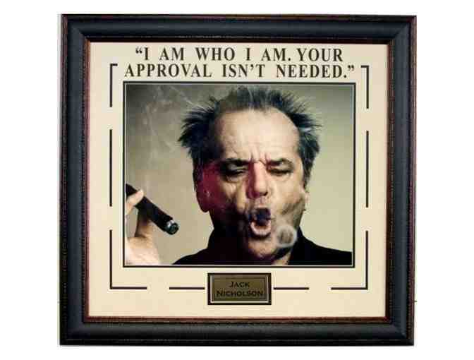 3 Time Oscar Winner Jack Nicholson Smoking a Cigar with Quote "I am Who I am, Your Approval Isn't Needed" Framed Photograph