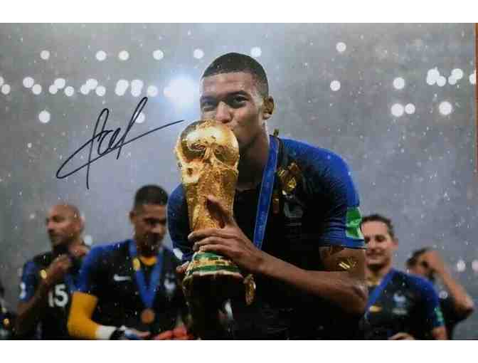 Kylian Mbappe France World Cup Autographed Championship Photo. Comes with certificate of authenticity.