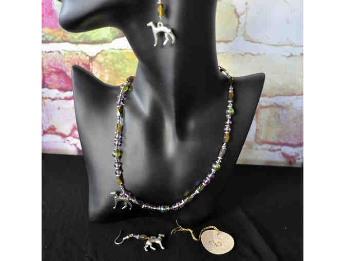 Iridescent Glass Beads and Spacers With Greyhound Pendant And Matching Earwire Earrings