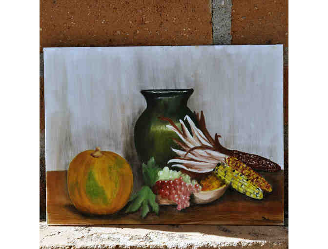 Original Acrylic- Harvest Still Life With Green Vase - Unmatted/Unframed by Marlene Koch