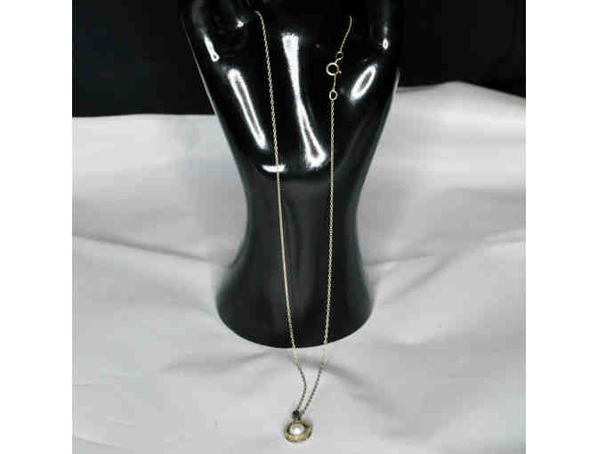 Pendant is Round and Set with a Pearl Surrounded by Clear Stone Chips
