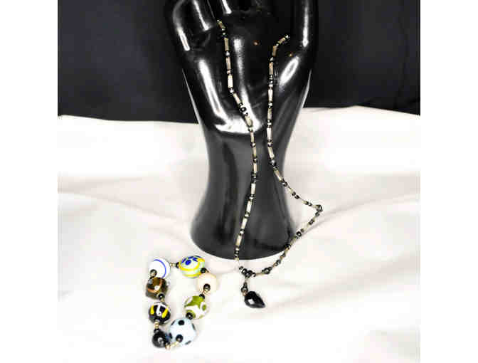 Two Black and Clear Beaded Necklaces and Multi-Colored Glass Bead Stretch Bracelet