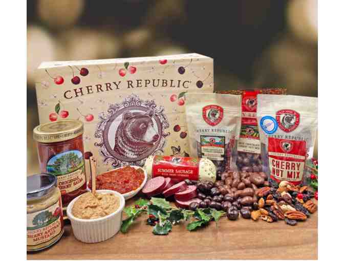 There's something for everyone in the Cherry Republic Big Classic gift box. Packed with generous sizes of their most popular staples - including sweet and savory favorites like nut mixes, chocolate covered cherries, salsa, and our summer sausage - this box packs a cherry punch! Perfect for creating a welcoming spread for coworkers, friends and family. Now shipped in their Signature Gift Box. Gift Box Contains: Cherry Summer Sausage - 10 oz. Cherry Artisan Mustard - 9 oz. jar Original Cherry Salsa - 16 oz. jar Milk Chocolate Cherry Nut Mix - 8 oz. bag Dark Chocolate Covered Cherries - 8 oz. bag Cherry Nut Mix - 8 oz. bag Gift box items are subject to substitution based on product availability.