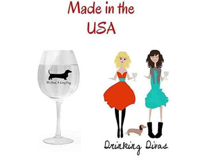 For the wine-loving doxie pawrent!! High quality wine glass. 7 1/2" tall. Fits perfectly in dishwasher. Lead-free. Dishwasher safe. Made in the U.S.A. Individually-wrapped in a strong GIFT BOX with tissue paper. Isn't this adorable!!