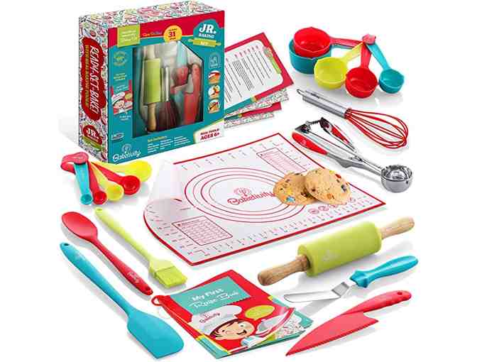 This bundle has everything your Junior Chef needs to whip up some tasty treats! Includes America's Test Kitchen Cookbook, THE cookbook every kid chef needs on their shelf, a simple yet functional embroidered apron, DIY baking set, cake pops baking kit, sprinkles and a 31-piece baking set.