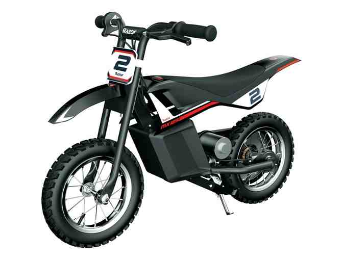 This MX125 Dirt Rocket is your kid's intro to adventure, offering the adrenaline pumping fun of off-road riding in a scaled-down size designed for dirt bike riders ages 7 and up. Razor's smallest electric-powered dirt bike, the MX125 helps younger riders build confidence on dirt, delivering top-notch performance with authentic MX-frame geometry, motocross-style knobby tires and twist-grip throttle for a true-to-life dirt bike ride. Rear-wheel drive delivers better weight and balance control for greater safety and stability, while the high-torque, chain-driven electric motor powers riders up to 8 mph for up to 40 minutes of continuous use. It's the perfect introduction to the excitement and adventure of off-road riding. Also comes with helmet and gloves.