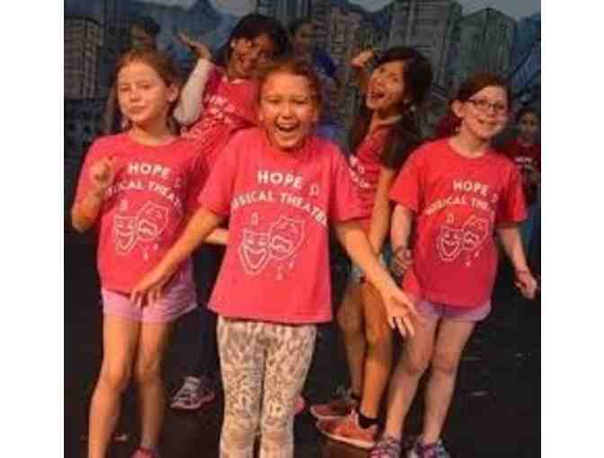 Be a star! Does your child love to sing, dance and act? Then Hope Musical Theatre Summer Camp is for them! Here is one Junior Camper spot in the popular Hope Musical Theatre Summer Camps for 2023! (campers must be entering 1st - 2nd grade.) In just one week, an entire musical is rehearsed and then performed for the community with costumes, sets, and all! Your child will act, dance, and sing songs from one of the Broadway classics! Past summer shows have included musicals inspired by Annie, Peter Pan, The Wizard of Oz, Once Upon a Mattress, Bye-Bye Birdie, The Music Man and more. Summer Camps run every week this summer from June 5 to July 28 (from 9am to 4pm). Winning bidder will need to provide 3 summer session date choices, any of which must be agreeable. This certificate is good for one summer camp Junior Camper spot for 1 week (tuition, all activities and supplies) and one Hope Musical Theatre t-shirt. Junior Camper must be entering 1st or 2nd grade. Many Bay Area students have enjoyed being a camper in the past, why not yours? For more informoation and summer session dates please visit us at www.HopeMusicalTheatre.com