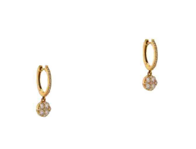 These 14K Yellow Gold Mini Huggies with Round Diamond Drops are the perfect everyday earrings to take you from morning to night. From school drop off, to lunch with girlfriends, to soccer games, and then date nights, they will make you shine in each occasion. These exquisite earrings are 14K gold, diamond weight 0.60 Carat, length 3/4", width 7/16", fastening: Hinged Hoops.