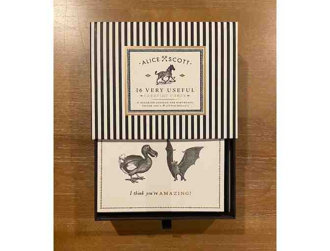 16 VERY USEFUL Greeting Assortment Boxed Notecards feature the whimsical designs of Alice Scott. Each box contains cards featuring 6 whimsical designs with different sentiments including "Ahoy There!", "Happy Birthday", "Huge Thanks!" and more.