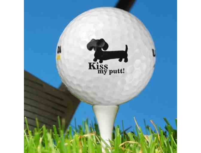 Take dachshund love on the course with these cheeky Kiss My Putt golf balls!