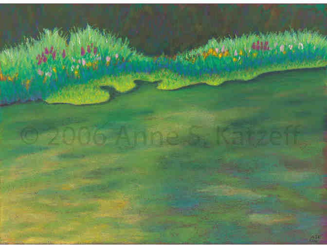This pastel painting was inspired by a restful afternoon in an Audubon sanctuary in Lenox, Mass. The artwork measures 16 x 12 inches. With the mat, the finished piece measures 20 x 16 inches.