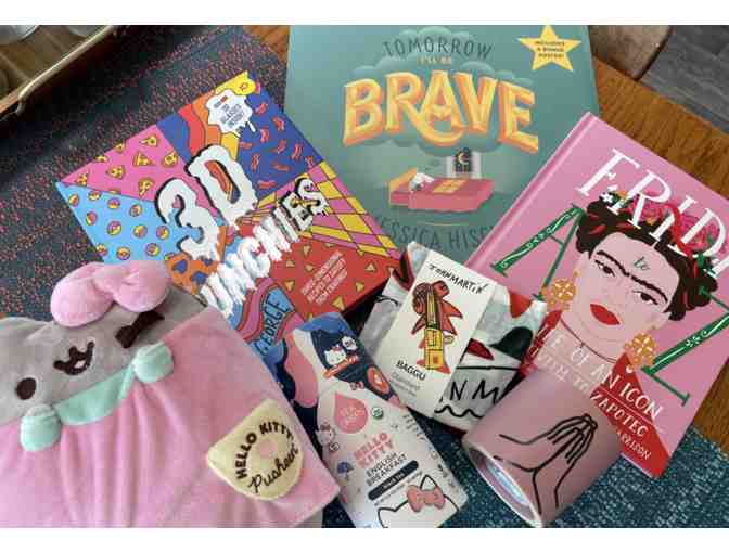Tomorrow I'll Be Brave 2023 calendar, 3D Munchies recipe book, Frida A-Z book, Hello Kitty Pusheen Thank you for you Candle, Hello Kitty Tea, John Martin Baggu.