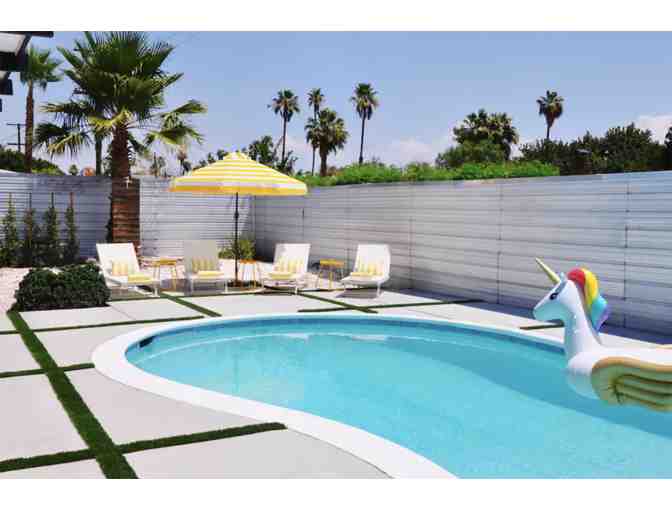 ** 2 nights in June-August. Dates to be confirmed and booked after auction directly with donor. ** $200 cleaning fee to be paid by winner https://www.airbnb.com/rooms/44612480?source_impression_id=p3_1675720043_Ov6mbuaWHF2Vfqi8&guests=1&adults=1 Your mid-century desert getaway is waiting for you. This gorgeous remodeled 3 bedrooms 2 bath house is surrounded by a large, private, lush yard which includes a large pool, an outside shower, a covered dining area ideal for barbecues, a hammock shaded by the palm trees and a large front sectional sofa to enjoy stunning sunsets in front of a warm outdoor firepit, and to later on count the stars in the sky. With more than 7,400 sq ft of outdoor/indoor living area, this Palm Springs home has an abundance of space to enjoy a sunny getaway in casual elegance, with a dozen of enormous palm trees and mountain views all around. Plus, pick limes from our lime tree for your Margaritas! The indoor and its furnishings will continue to bring you to a classic and authentic mid-century home. The large open-space living room includes two lounging areas, one with a Smart 4K TV, the other one dedicated for a more relaxing time, perfect for indoor yoga, openings a book, play some vintage games or to enjoy our high speed internet wifi. The indoor dining is facing a large window with cactus planted to keep your desert experience all the way and is attached to a fully equipped kitchen, with brand new modern appliances (fridge, freezer, oven, dishwasher and Nespresso machine). We also partnered with a vineyard to create our own 'Casa Evelyne' wine. The kitchen takes you directly to the covered patio to allow more comfort during the day after relaxing in the pool. Enjoy our brand new barbecue and at night, turn on the string light to make your retreat unforgettable. Additionally, the three bedrooms are bright and each bedroom offers great privacy. Two bedrooms have their own access to the frontyard and breathtaking mountain views. The Master bedroom suite has a pool view and its private bath. Each bedroom includes a memory foam bed, new linens, towels and pillows - and comfortably sleeps up to 6. All bedrooms are linked through a hallway in which you'll find a large hidden washer and dryer. This house is fully gated making it very private, secure and quiet. The large front yard has a hammock and a large sectional with its outdoor firepit for cozy colder nights during winter, and the backyard has a large pool that you can enjoy all year long with our 'Palm Springs' mural, made by a local artist. The house is perfectly located to explore the area. Located 7 minutes away from the main street of Palm Springs, 5 minutes away from Cathedral City and just 40 minutes away from Joshua Tree. Trader Joe's, Target, Von's and all the main stores are all less than 10 minutes away. This Palm Springs home is located one minute walking away from a giant park and its stunning views. Our garage fits two cars and the driveway another two cars. The driveway is located inside the gate for more security. You will also find two electric bikes available to go explore the city.