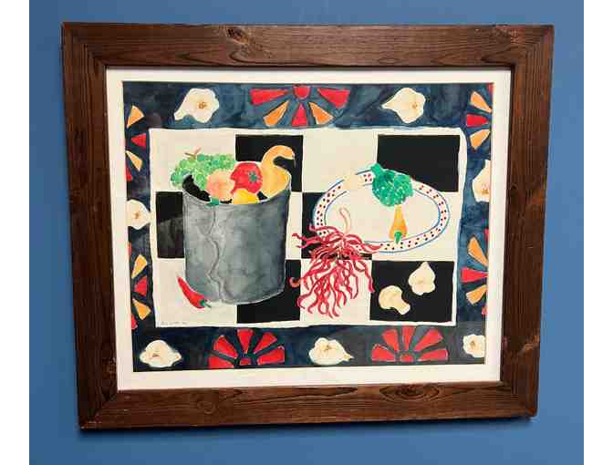 Judy's exposure to painting began over 30 years ago at the Old Town Triangle Art Center in Chicago, Illinois. Watercolor paintings allow for great detail and analysis, and this brightly colored artwork showcasing fruits and vegetables would be perfect in either a kitchen or dining room.