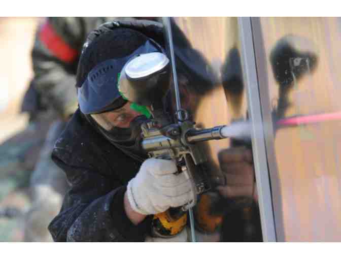 That package includes entry to our Skirmish Paintball fields, a Tippmann 98 paintball gun rental, goggles/facemask rental, unlimited N2 air fills, free parking, professional paintball referees, and all day play