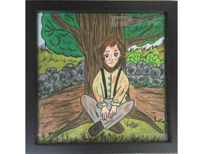 8 X 8 framed original illustration of outtake illustration done in prismacolor and children's book Henry and the Runaway Pig Artwork is signed by the illustrator. Book will be inscribed by author.