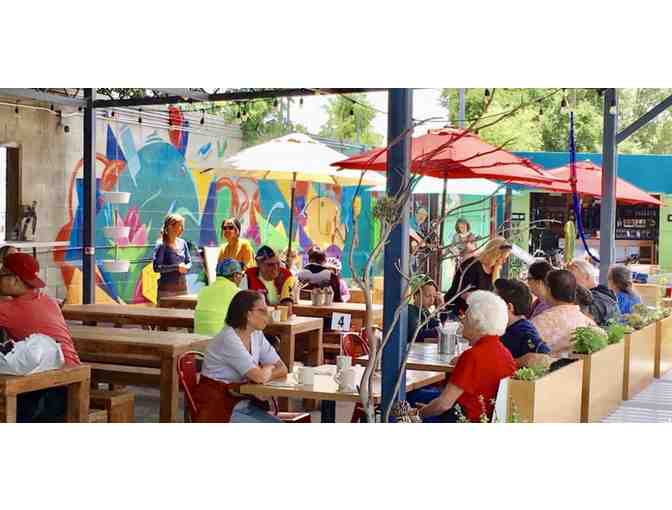Gift certificate for 2 all day bike rentals at Spoke Bicycle Cafe + 2 beverages of your choice, including their beer & wine selection. Bike rental Wednesday-Sunday, all day hours 10am-5pm. Spoke Bicycle Cafe set up a permanent location along the LA River Bike Path to provide a comfortable, welcoming space for cyclists, pedestrians, neighborhood residents, and others. They share a 150 foot border with the LA River bike path and the one-of-a-kind, mostly outdoor spot is perfect for large groups. Along with top quality food and drinks at the cafe, the bicycle shop on location offers expert bike repairs, a large bicycle rental fleet, and a carefully curated array of accessories. Spoke Bicycle Cafe also sells records and T-shirts and hosts a variety of music, art, and community events. Spoke Bicycle Cafe's mission is to create a beautiful space that enhances the local community by providing a gathering place for LA River cyclists, pedestrians and neighbors to enjoy quality cuisine and crafted beverages while supporting the arts and encouraging relationships.