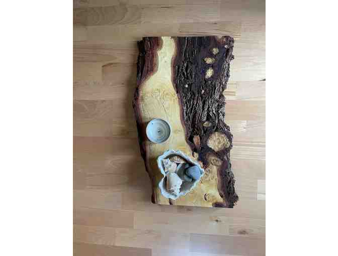 Handcrafted by SDA Grandparent Lou Silverthorn. Free Form Rectangle shape, with alot of bark elements.