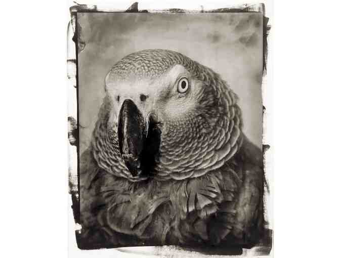 Psittacus erithacus, 2019, unique hand-printed platinotype on archival rag, custom white frame, float mounted, museum glass 22 3/8 in x 26 7/16 in. Edition 4/5.