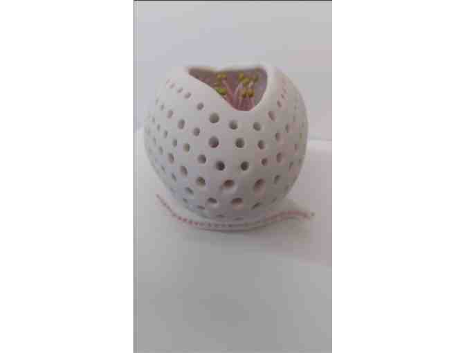 SELF ABSORPTION IN PINK, 2022, slip cast porcelain from original plaster mold, hand built elements and pigments, 8 in x 5.5 in x 5 x 5 in