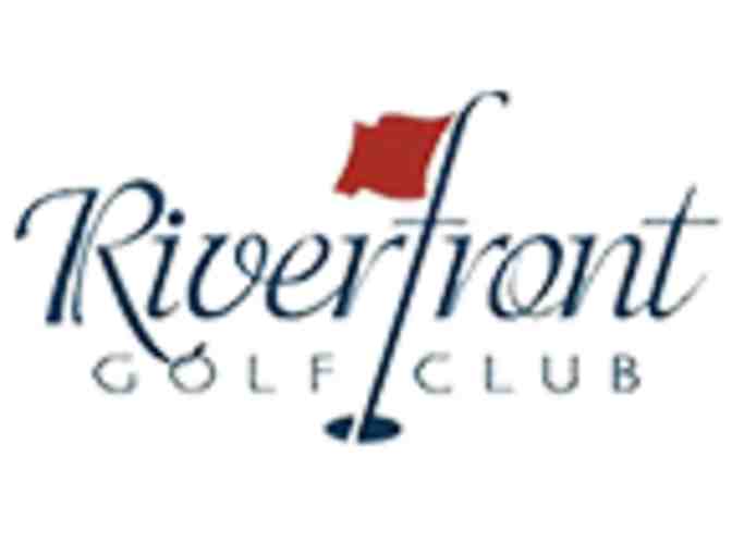 Bearer is entitled to Four (4) Green Fees at Riverfront Golf Club, Golf Cart Not Included. Valid Monday thru Thursday anytime. (Not Valid on Weekends or Holidays, No Exceptions) Cart Fee $25