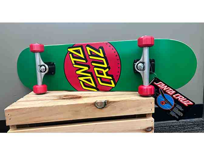Santa Cruz Classic Green Dot Mid Size complete skateboard.