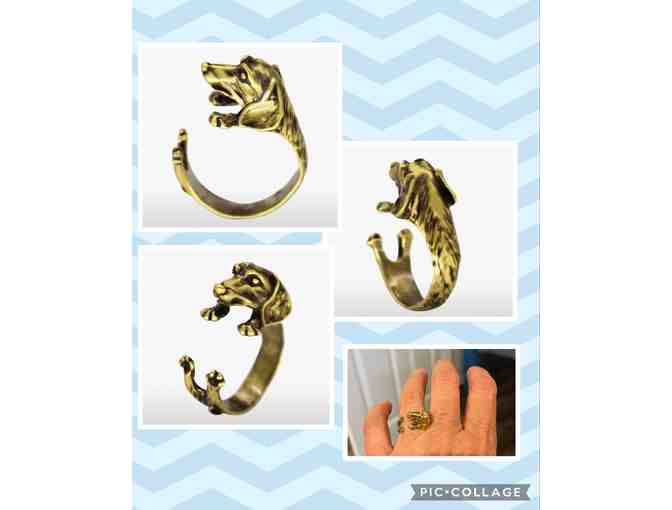 Ignore my ugly hand in the photo but I had to show how cute this ring is! It's adjustable. It's gold-tone metal. SUPER CUTE!