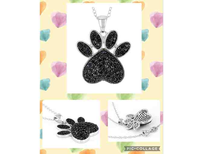 Absolutely gorgeous 1.01ctw Round Black Spinel Rhodium Over Sterling Silver Paw Print Pendant With Chain.