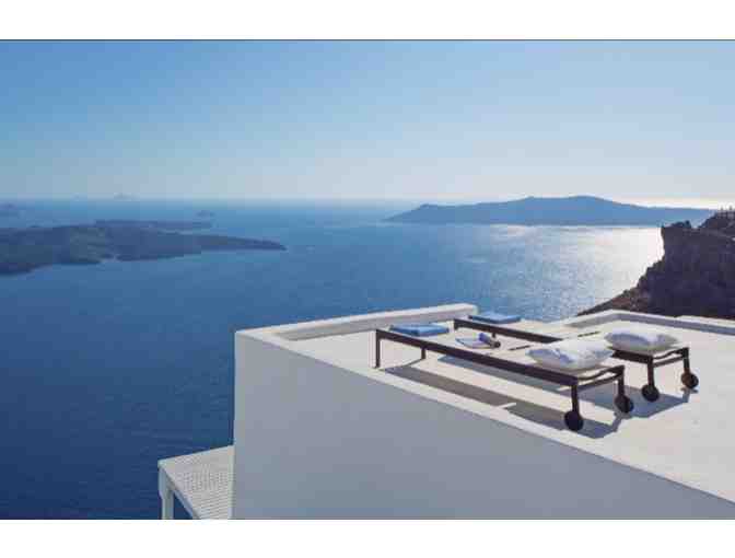 - 8-day/7-night stay at a private villa in Santorini, Greece, featuring 3 bedrooms and 4 bathrooms