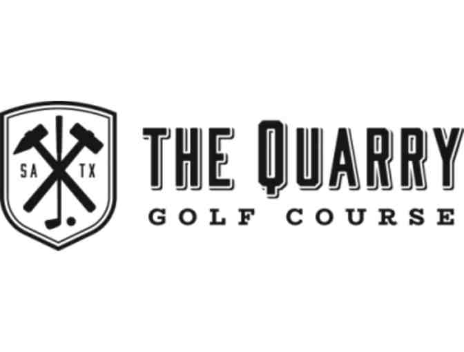 An 18-hole round of golf for four with carts and range balls at The Quarry Golf Course in San Antonio, TX. Foursome allowed to be split in two. Golf appropriate attire required. Valid Sunday through Thursday only. Call the golf shop 210-824-4500, ext. 1 for reservations. Certificate expires April 12, 2024. Visit: https://quarrygolf.com/