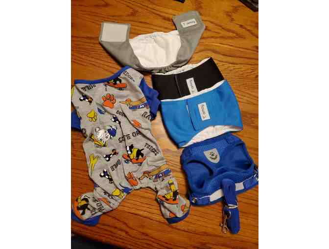 Small Male Dog: PJ, Harness & Leash, (3) Diapers