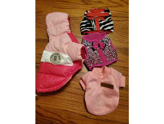 XXS Dog Coat, Sweater, & 2 Harnesses