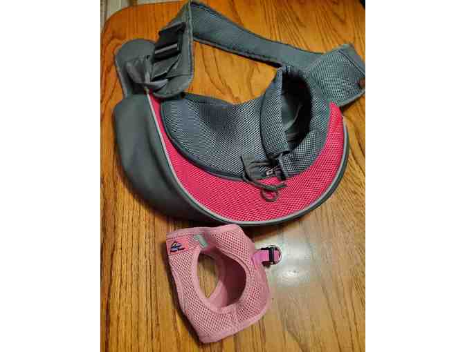 Small Dog Sling Carrier fits up to 5 lbs Strap fits person 38.6" - 46.5" Size 14.96 L, 3.94 W, 7,87 H XS Pink Dog Harness fits Chest 11"-13" and Weight 4-6 lbs